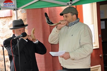 Howard Goldenberg and Richard Lew blow the Shofar