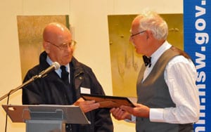 The book, Jews of the Outback, was launched at the Broken Hill Art Gallery, by Professor Colin Tatz. He spoke to the challenges of survivalism and fragmentation, of migration and assimilation – key elements of the Jewish experience, which he noted were so well illustrated by the history of the Jews of Broken Hill. He complimented the four authors, Rutland, Mann, Price and Kate Mannix, on the book. The launch took place surrounded by the magnificent artworks of Hanna Kay of the Maitland Jewish cemetery, the other small New South Wales Jewish community where the cemetery and synagogue are the only reminders of its past history. The event was chaired by John Shone, who works on environmental projects and has just relocated to Broken Hill.