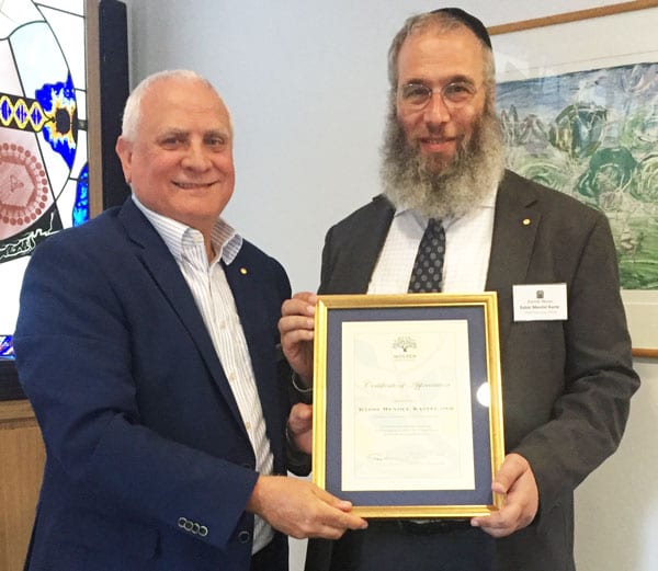 Sydney’s Wolper Jewish Hospital has acknowledged Rabbi Mendel Kastel on 30 years of visiting patients and providing pastoral care at the hospital.