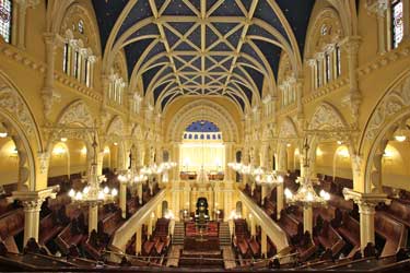 Sydney’s Great Synagogue was designed by Thomas Rowe in 1875 and built in 1878. It is acknowledged as one of Sydney’s most beautiful heritage buildings. The Great Synagogue has remained the Jewish cathedral of Sydney, though today high-rise buildings on either side tend to squash its exterior majesty. The growth of the Jewish community and its suburban dispersal has brought the establishment of many other synagogues but The Great has retained its stateliness and solemnity, while its busy program of services and activities is supported by a loyal congregation and provides, together with the city churches of other denominations, a serene spiritual oasis in the midst of the bustling life of the city.