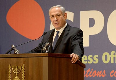 Benjamin Netanyahu addresses the international media. Photo: Amos Ben Gershon/GPO