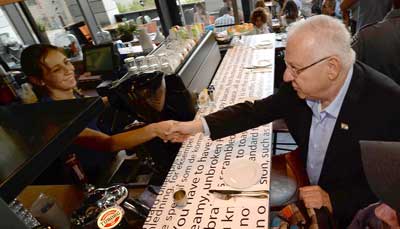 The President went on to visit the Sarona Market in the heart of the city to express his support for the workers and businesses who had managed to return to normal routine as quickly and as best as possible.