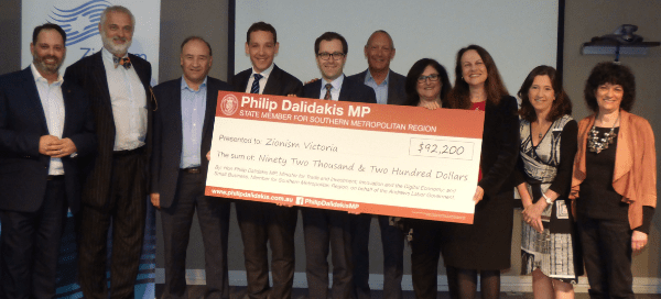 Last night Philip Dalidakis MP and several of his Government colleagues and Labor candidates for the forthcoming State election attended the Zionism Victoria Executive Meeting to present a cheque for $92,200.