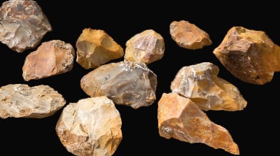 Hundreds of hand axes were uncovered in the excavation. Photographer: Samuel Magal, Courtesy of the Israel Antiquities Authority