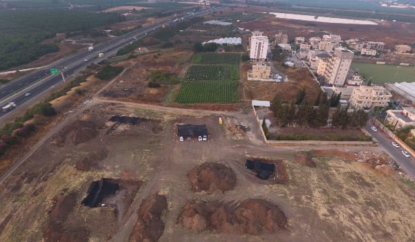 The excavation at Jaljulia, aerial view. Photograph: Yitzhak Marmelstein, Courtesy of the Israel Antiquities Authority
