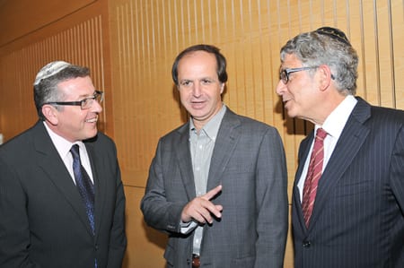 UIA President Bruce Fink (l.) and NSWJBD President Robin Margo chat to Khaled abu Toameh pic: Henry Benjamin - Reality Media