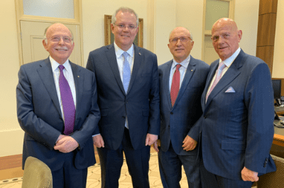 The Australia/Israel & Jewish Affairs Council’s (AIJAC) National Chairman Mark Leibler, Executive Director Dr Colin Rubenstein and longstanding supporter Solomon Lew have met with Australian Prime Minister Scott Morrison.