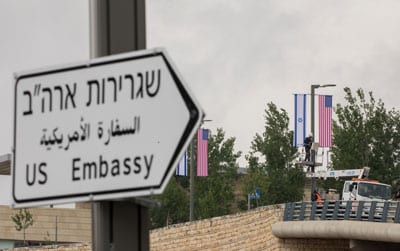 Preparations for the opening of the U.S. Embassy in Jerusalem today are underway. The new street signs that direct visitors to the embassy are up, and the embassy already changed its Twitter handle from @usembassyta to @USEmbassyjlm.