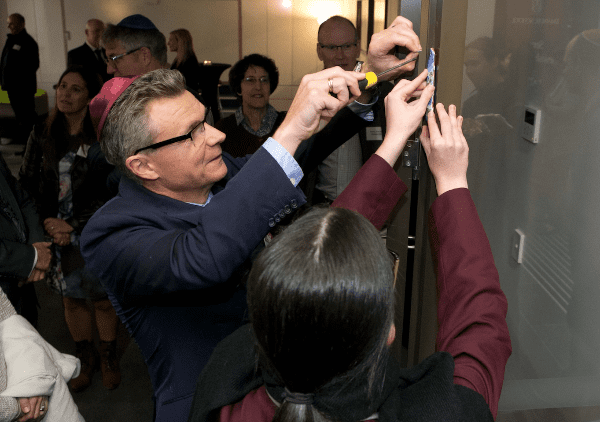 Over 150 people attended the evening and mezuzah dedication ceremony. President of the School Board, Adam Blackman, acknowledged that it takes hundreds of hours of planning to get a building such as the Innovation Centre to completion. “It also takes the willingness to move beyond what is comfortable and sometimes even logical. The Centre will play a major role in welcoming and developing a generation of thinkers who will graduate to become Astronauts, Scientists, Carpenters, Mathematicians, Chefs, Engineers and dreamers.”
