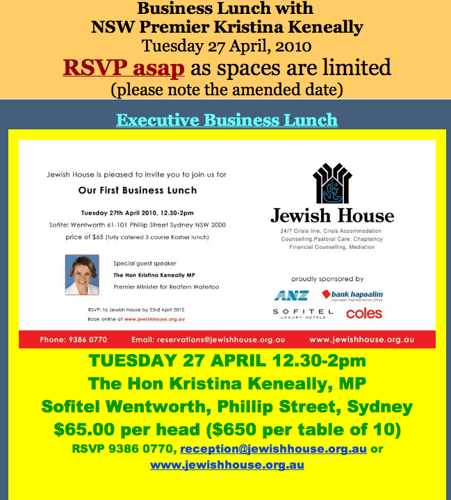Inaugural business lunch at the Sofitel with Premier Kristina Keneally
