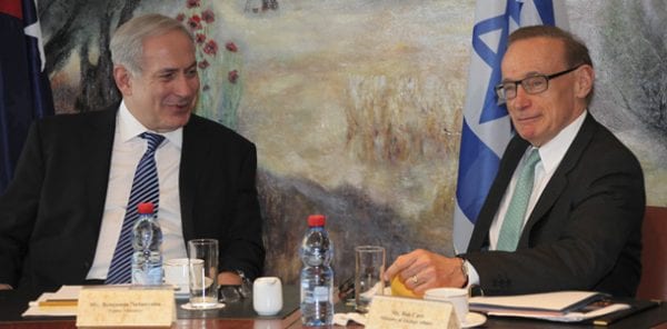 Israeli Prime Minister Bibi Netanyahu and Australian Minister for Foreign Affairs Bob Carr pic: Mati Milstein