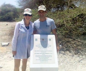 Zoe and Darren visit the project. The plaque acknowledges their contribution.