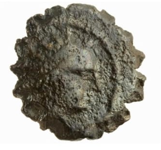 The newly discovered bronze coin dating to the era of the Hanukkah story. Credit: Israel Antiquities Authority.