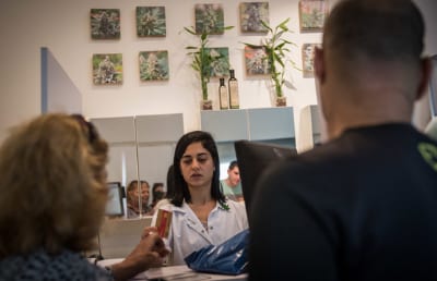 Pharmacists supply patients with prescribed medical cannabis at the Tikun Olam supplier’s store in Tel Aviv, April 10, 2016. Credit: Hadas Parush/Flash90.