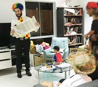Over 15 children joined in the celebrations and to listen to the Megillah being read by the city’s new rabbi.