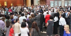 Menorah in Central Synagogue lobby pic; Mendel Moskowitz