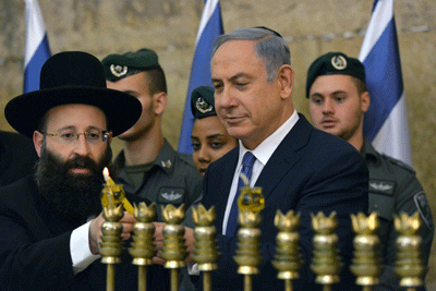 Israel is a candle in the darkness. Around us is a great darkness and here in Jerusalem, in the State of Israel, we are lifting the banner of the independence and honor of man, for the right of the Jewish People to live free in its land and in its city, the same city that the Maccabees liberated.
