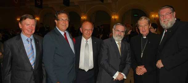 Mr Malcolm McCusker AO CVO QC Governor of WA, Mr Michael Sutherland Member for Mt Lawley representing the Hon Premier, Dr Keith Shilkin AM Convenor PHC 120th Year Commemoration Committee, Lord Jonathan Sacks, Chief Rabbi of the United Hebrew Congregation of the Commonwealth, tThe Most Reverend Barry Hickey OAM, Catholic Archbishop of Perth and Rabbi David Freilich, Chief Rabbi of the Perth Hebrew Congregation pic: Sas Saddik