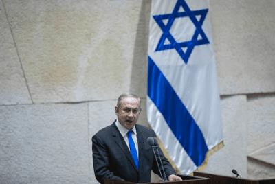 Israeli Prime Minister Benjamin Netanyahu speaks at the Israeli Knesset on Jan. 16, 2017. Credit: Yonatan Sindel/Flash90.