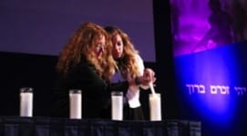Denise & Gabby Waxman light a candle in memory of Nachshon Waxman at the 2013 Yom Hazikaron Commemoration.