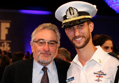 Robert De Niro and Israeli Navy Capt. Nethanel Reicher (Photo Credit: Noam Chen).