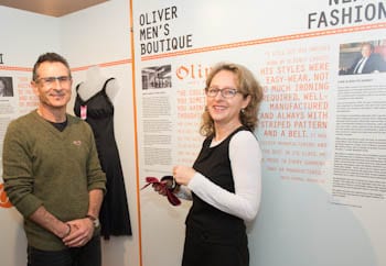 Right at the front of the exhibition there is a movie interview with many of the personalities who are still with us. You could spend four hours looking at the five minute grabs – however, the curators were planning to shorten it. But I was lucky enough to see the still suave George Bloomfield telling how the trade used to be when his Playtogs brand was kicking fashion goals.