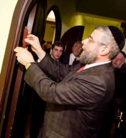 Others attending the mezzuzah-fixing by Rabbi Goldschmidt included Bureau chief Yaakov Shumiatsky, members of the diplomatic staff at the Israeli embassy, Mr.Yuri Kanner RJC (Russian Jewish Congress) President and Mr.Alik Nadan Director, JDC Representative Office in Moscow and Central Russia.