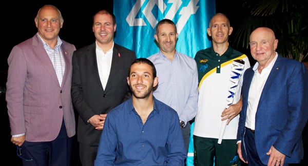 Maccabi Australia Inc Chairman Barry Smorgon, Josh Frydenberg, Adam Kellerman, Adam Zines, Sean Bloch and Head of Delegation Tom York Photo: Robi Karp