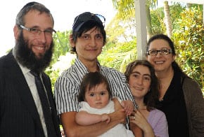 Zara Brodaty with Rabbi Mendel Kastel, DAvid and Karen Brodaty and Michelle Lewis