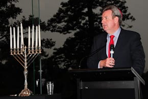 Messages to the community were delivered by Don Harwin the president of the Legislative Council and Speaker Shelley Hancock before Premier Barry O’Farrell, donning a red yarmulke took to the podium.