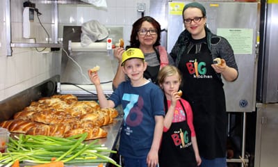 Mila Rodov, Sarah Bendetsky and Yosya and Rochel Bendetsky cooking for the Shabbaton at Our Big Kitchen in Bondi