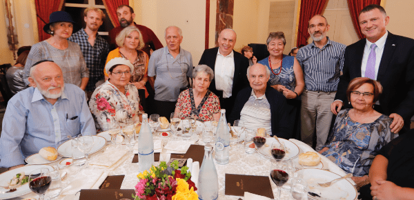 Guardian of Zion Natan Sharansky and MK Yuli Edelstein, Speaker of the Knesset, with former Soviet refuseniks and their families Photo: Yoni Reif