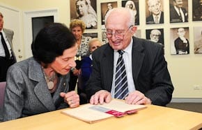Aron Kleinlehrer shows Governor Marie Bashir Nazi documents