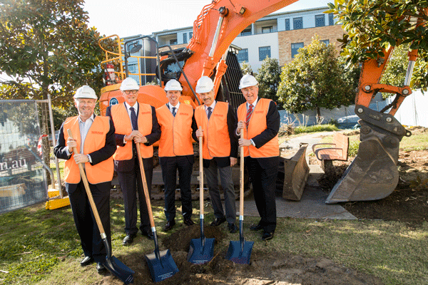 President David Freeman AM, CEO Robert Orie and Board Members Gary Inberg, Tom Mautner and Michael Graf (representing the Montefiore Development Committee) donned hard hats as they turned the first soil. Guests toasted the event with champagne as Mr Freeman addressed the crowd, noting the importance of the development to the 130-year-old aged care organisation’s future goals: