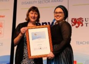 Jordana Schmidt [rt] receives an award