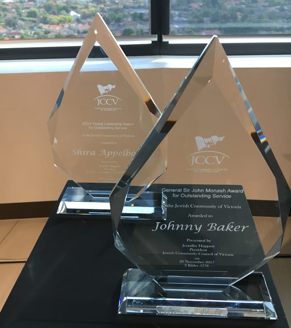 Johnny Baker who passed away recently was awarded the General Sir John Monash Award for excellence in community service at the JCCV’s AGM in a very moving ceremony.