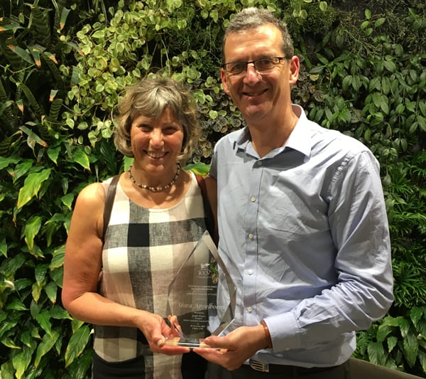Lionel and Libby Appelboom, parents of Shira Appelboom, winner of the JCCV Young Leader Award, accepting the award on her behalf