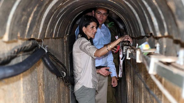 U.S. Ambassador to the United Nations Nikki Haley visits at a terror tunnel built by Hamas on the Israel-Gaza border, June 8, 2017. Photo by Matty Stern/U.S. Embassy Tel Aviv
