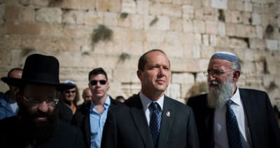 Jerusalem Mayor Nir Barkat (second from right) visits the Western Wall in the Israeli capital’s Old City, Oct. 22, 2013. Credit: Yonatan Sindel/Flash90.