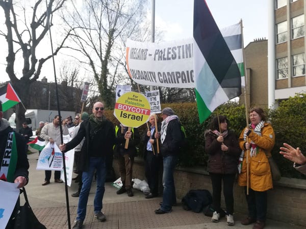 Anti-Israel protesters in Israel as part of the Ireland Palestine Solidarity Campaign. Credit: Ireland Palestine Solidarity Campaign via Facebook.