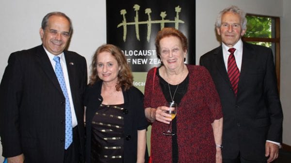 osef Livne, Ambassador for Israel, Carol Ratnam event co-ordinator and volunteer at the NZ Holocaust Centre, Inge Woolf, Founding Director of NZ Holocaust Centre, David Zwartz Chair of the Wellington Jewish Regional Council and MC for the event.