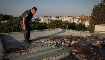 View of the damage caused by a rocket that hit a rooftop of a building in the southern Israeli city of Sderot on July 14, 2018. Photo by Hadas Parush/Flash90.