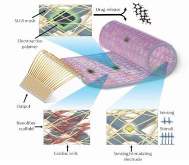 “The idea is to monitor heart activity online using nano-electronics, and when necessary regulate the engineered tissue activity — and even to release drugs at the push of a button with the help of special polymers we developed,” said Dvir.