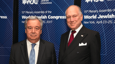 Guterres recalled what he called the “systematic policy of discrimination of Jews in the Middle Ages” and the expulsion of Jews from his native Portugal, which he called a “tremendous crime and the most stupid mistake ever made in Portugal.” He also recalled his strong emotions when he visited a nearly empty synagogue of the Portuguese Jewish community in Amsterdam, because it had been decimated in the Holocaust.