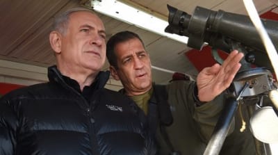 Israeli Prime Minister Benjamin Netanyahu (left) with Aviv Kochavi, head of the IDF Northern Command, during a visit to a military outpost on Mount Hermon in the Golan Heights, overlooking the Israel-Syria border, in February 2015. Credit: Effi Sharir/POOL/Flash90.