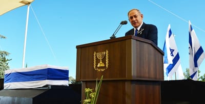 Israeli Prime Minister Benjamin Netanyahu speaking at the funeral of former Israeli President Shimon Peres. Credit: Kobi Gideon/GPO.