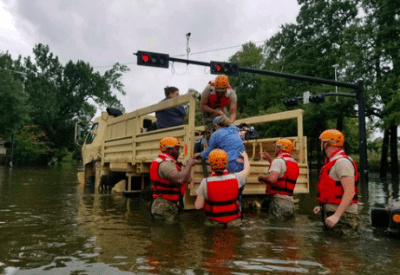 Texas National Guard members help rescue flooded Texans post Tropical Storm Harvey. Credit: Texas Gov. Greg Abbott via Twitter.