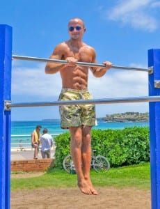 In the meantime, Jarryd, can be seen performing his amazing muscle-ups every morning in the exercise area near North Bondi Surf Club.