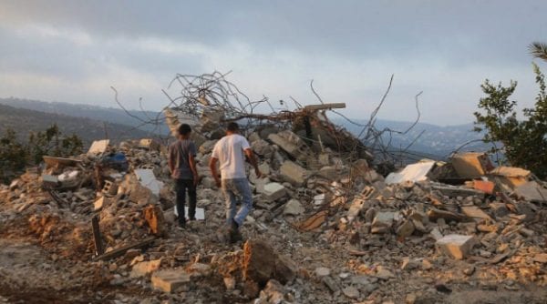Palestinians inspect the home of Muhammad Dar Yusuf, which was demolished by the Israeli military in the West Bank village of Kauber near Ramallah on Aug. 28, 2018. Dar Yusuf murdered 31-year-old Yotam Ovadia in a terror attack in the settlement of Adam. Photo by Flash90.