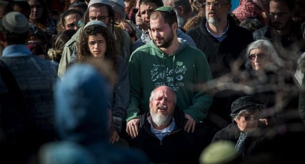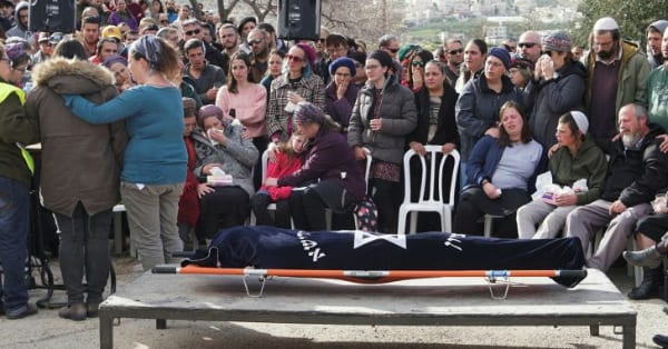 Friends and family members attend the funeral of Ori Ansbacher, 19, in the Jewish settlement of Tekoa on Feb. 8, 2019. The young woman was found dead the day before in Ein Yael, in the outskirts of Jerusalem, in what police declared a rape and murder. Photo Yonatan Sindel/Flash90.